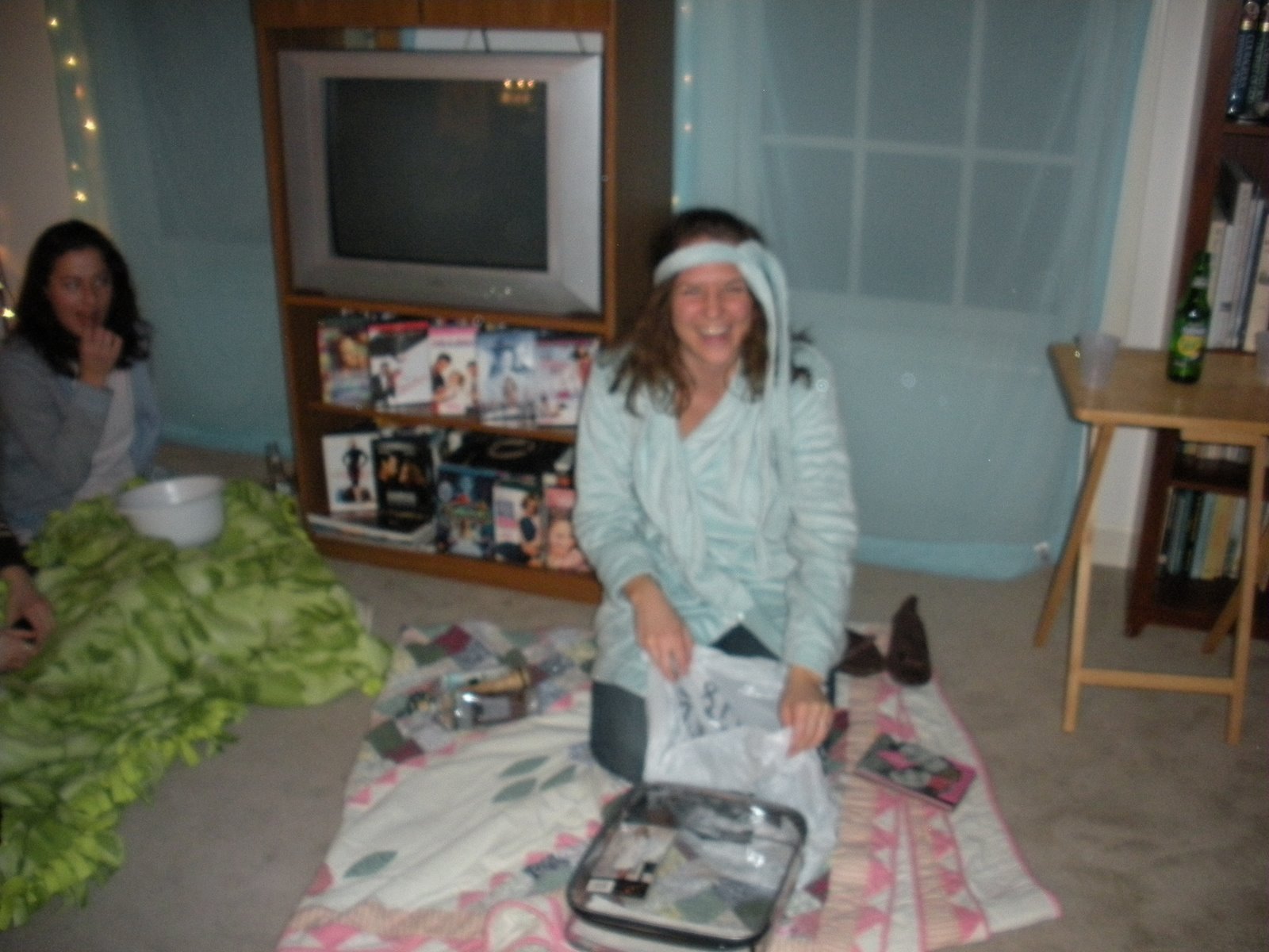 After storytelling, we all watched cheesy romantic movie clips. I made everyone watch Spike’s diatribe about love from Season 3 of Buffy–and then we moved on to Anne of Avonlea and Never Been Kissed. We capped it off with a clip from Enchanted. It was perfect because CJ is just like what’s her face! She is marrying a single father with a cute little daughter! I love it.