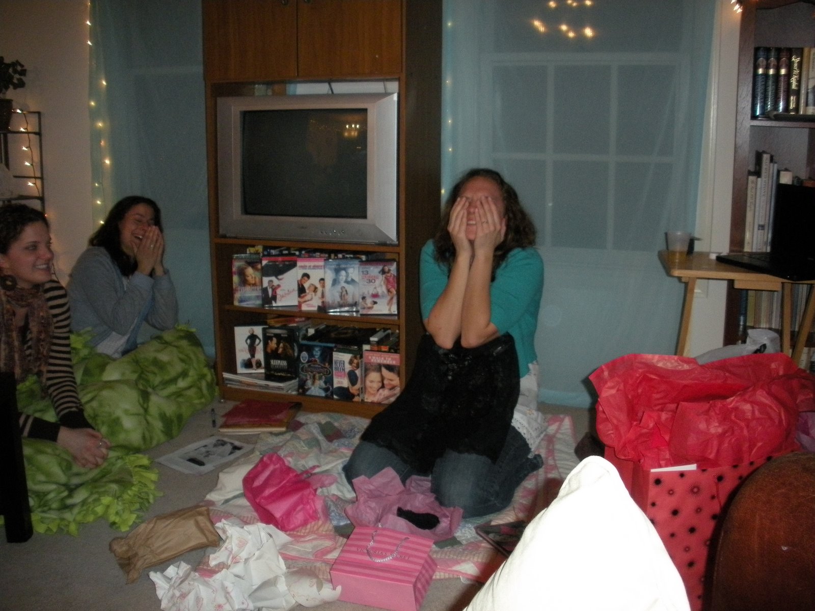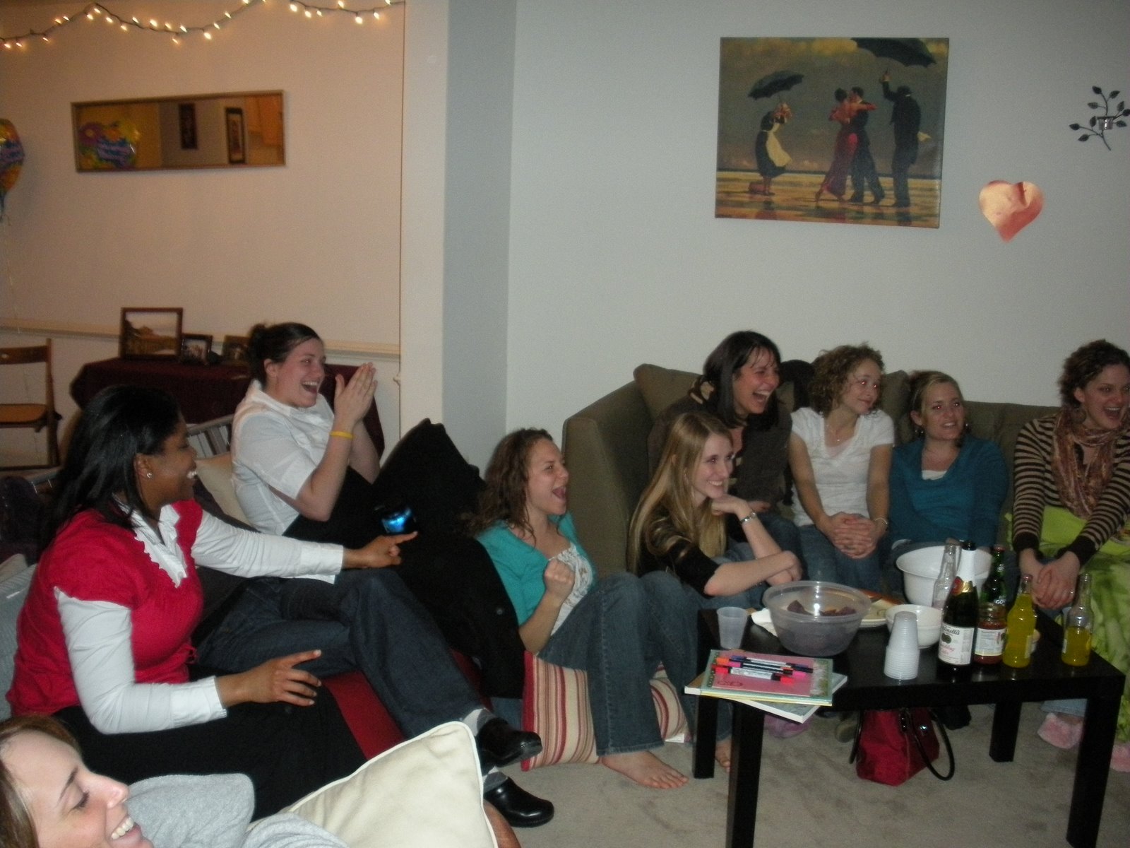 We sat around eating pizza and chocolate covered goodies, drinking Goya drinks, and listened to CJ tell the story of her new love! It was a great night and a great way to start off the