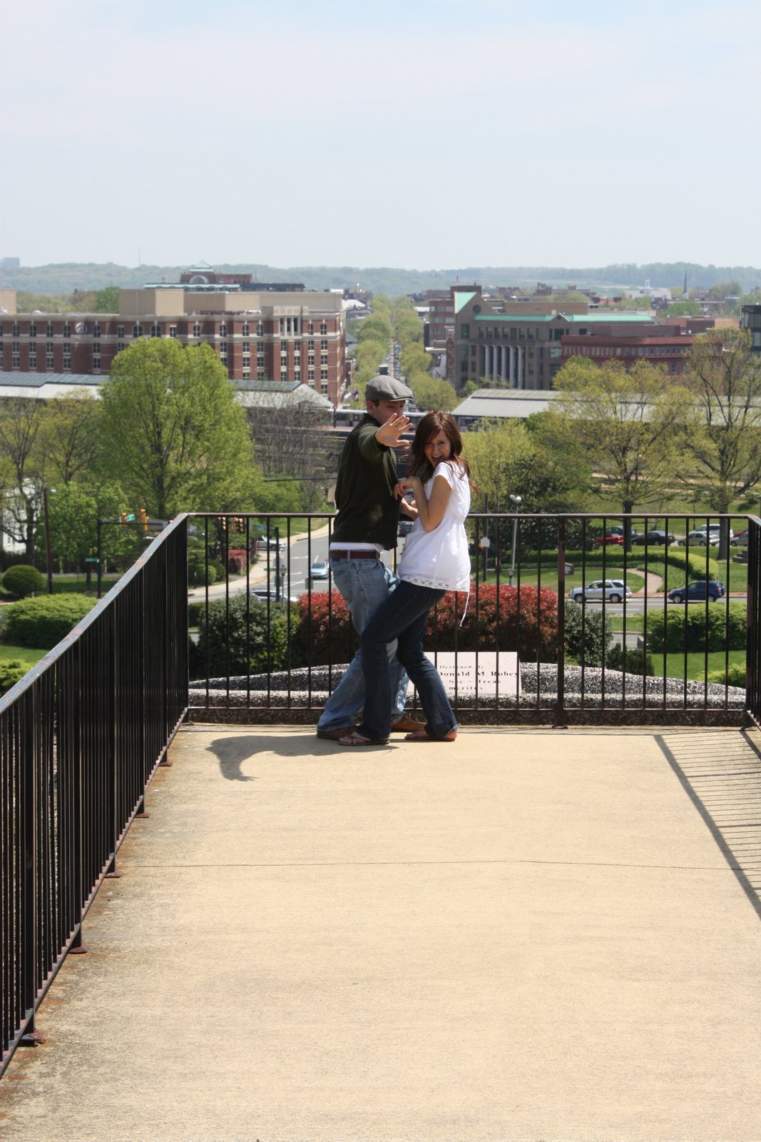 On the steps at the Masonic Temple.