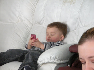 Konner is almost two now. He loves to babble on the cell phone. He would pretend to answer his phone (my mom’s pink phone) and then say, “babye!” and then he would pretend to text. So cute!