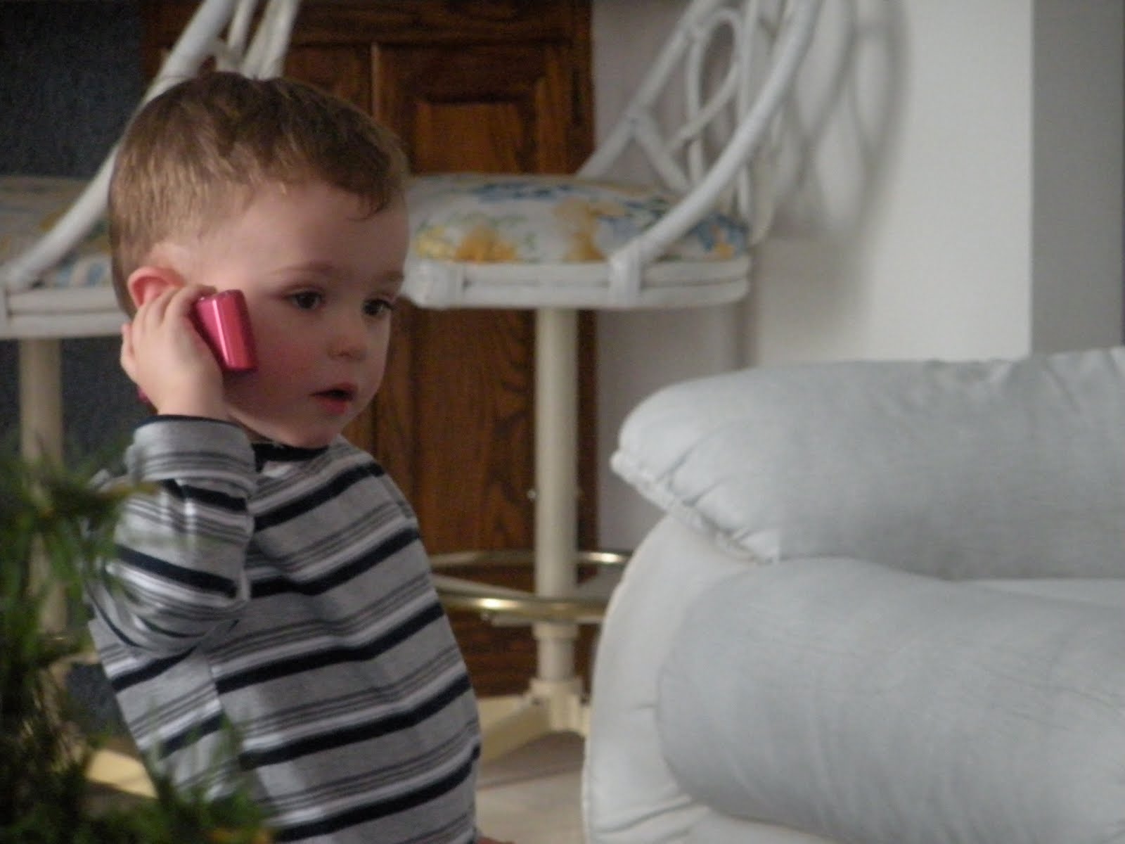 Konner is almost two now. He loves to babble on the cell phone. He would pretend to answer his phone (my mom’s pink phone) and then say, “babye!” and then he would pretend to text. So cute!