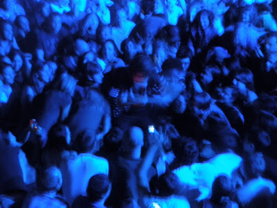 This is Matthew Vasquez standing in the middle of the crowd. He’s told everyone to crouch down. “Don’t ruin it!”, he yells at the people who aren’t crouching down. He starts to sing, “A little bit louder now. . .” The crowd joins in chanting. Everyone’s singing. And then…