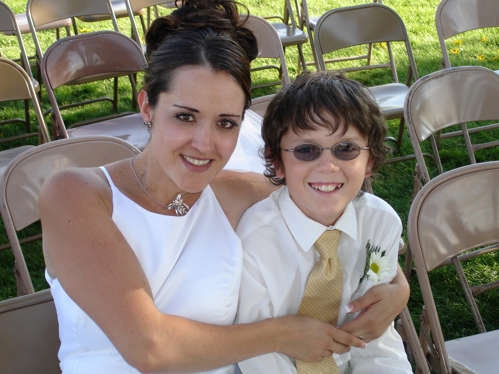 This is a picture of him at our sister Kim’s wedding back in 2005. He had decided at the beginning of the summer to not cut his hair at all that summer. And then he got transition lenses. We call this his John Lennon look-a-like phase.