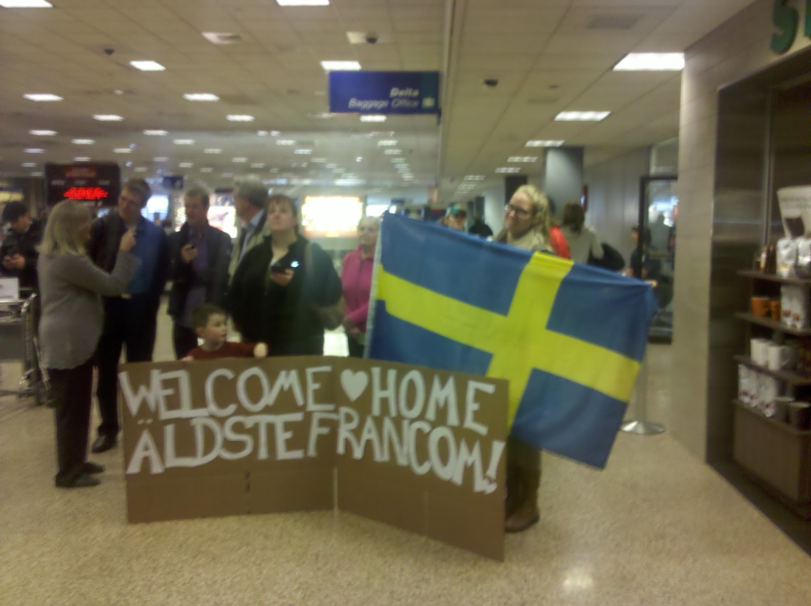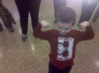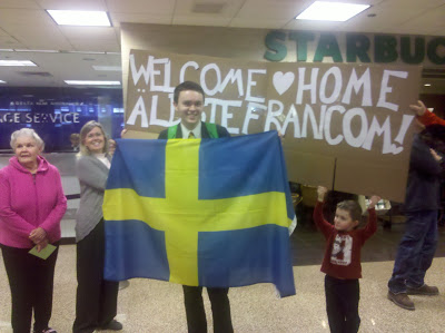 His Uncle Nick is home from Sweden today!!