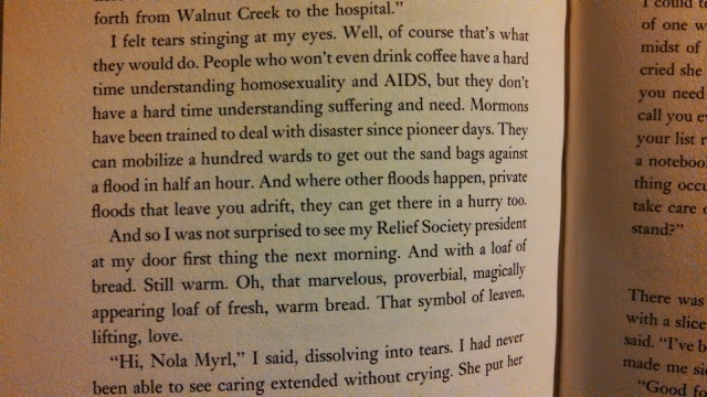 There are too many favorite passages, but this passage, describing her church congregation’s compassionate response to her husband’s illness from AIDS in the early 80s touched me the most.