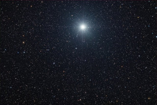 This is Sirius. It is the brightest star in the sky. It is bright because the light is only traveling across 8 light years.
