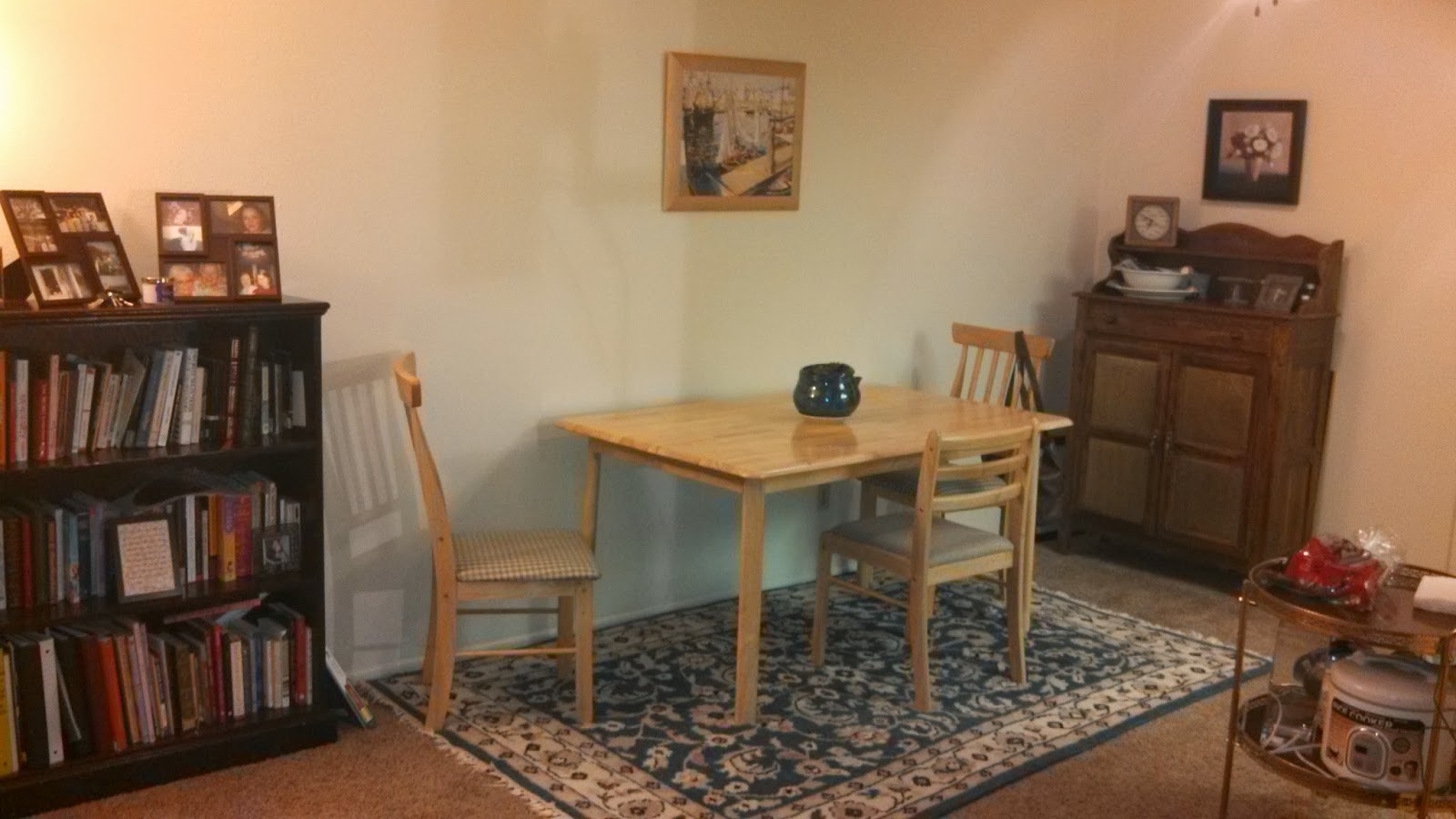 My little dining area. Books with family and mission pictures, and a beautiful plant my mom gave me that has somehow survived living with me.