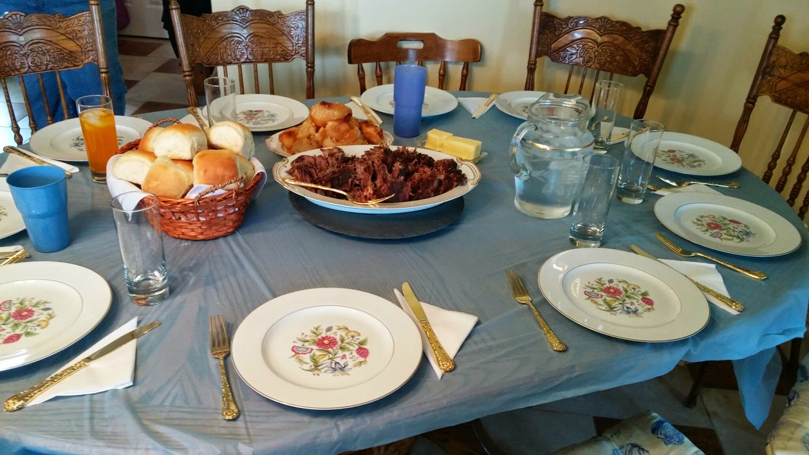 Last night, we gathered in Tremonton to enjoy a beautiful roast as a family. Jayson couldn’t make it because he is treating his employees to a trip to Vegas, but the rest of us gathered around the kitchen table we ate at as kids and welcomed Antonio and Daniel to the family.