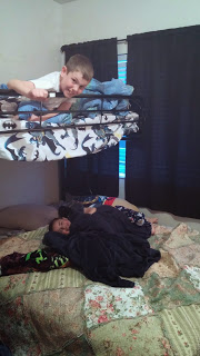 Friday night, Antonio’s oldest son Jaxon came to visit. The boys were so excited to spend the night in their new room–that little boys who usually are asleep by 8:30pm were up until 11 pm.