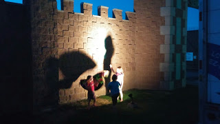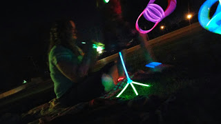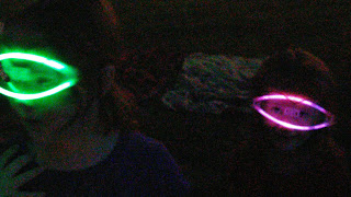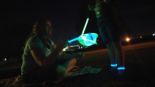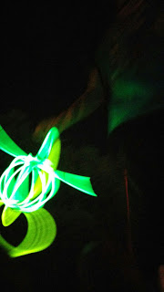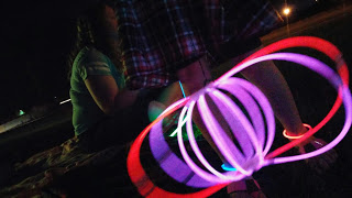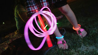 We basically ran around the front yard with glowy things, trying to see the Fireworks!