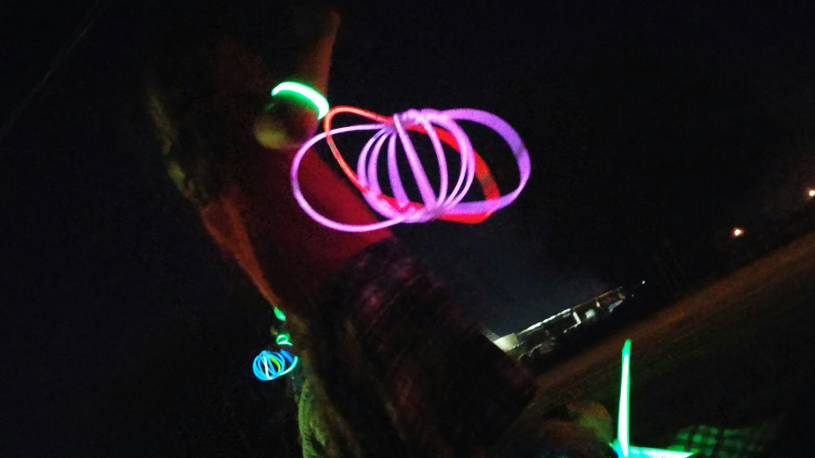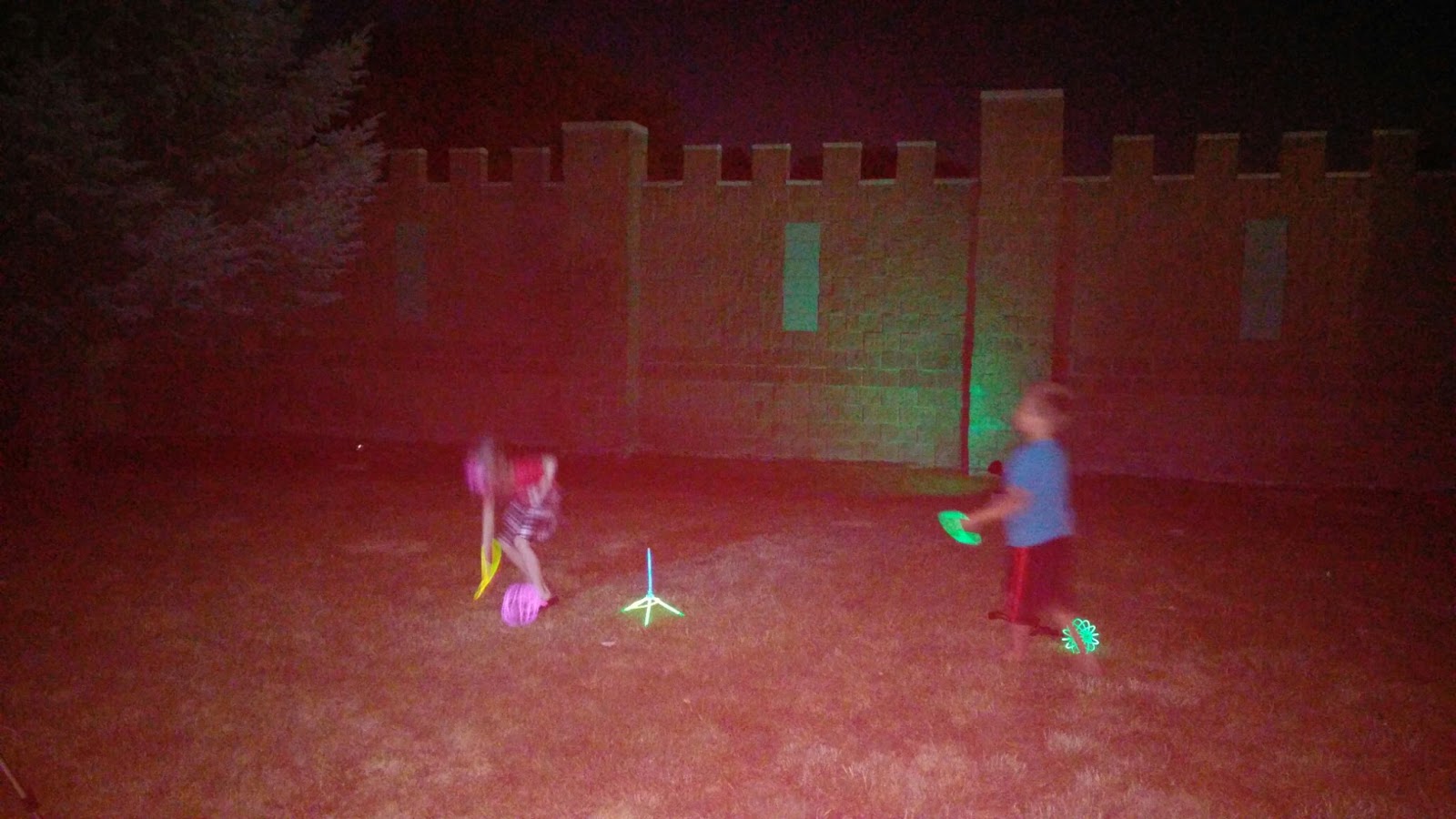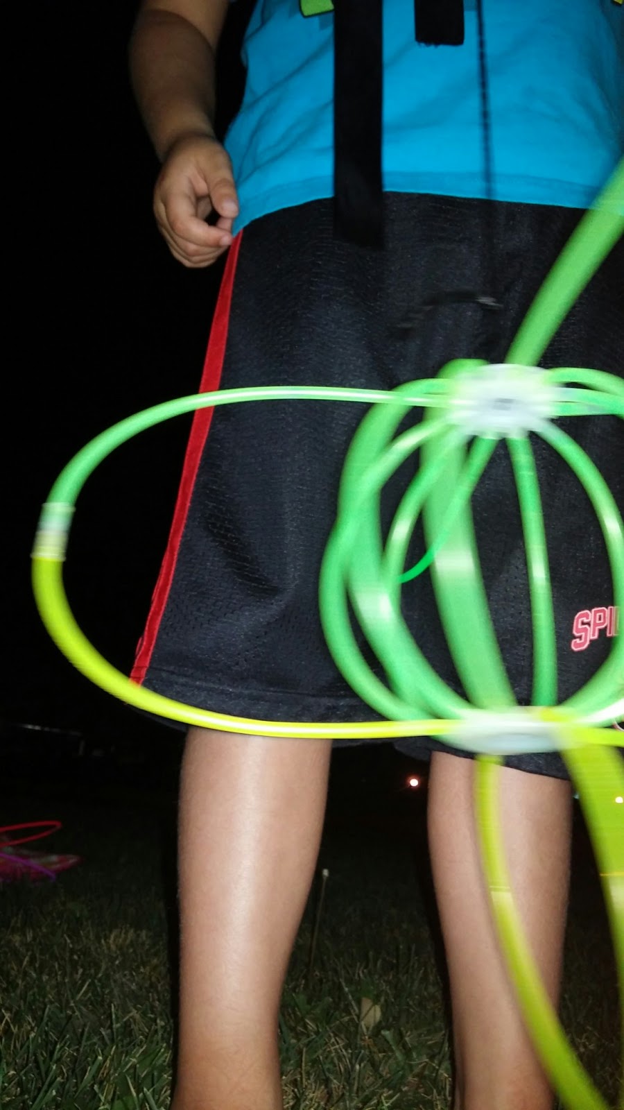 We basically ran around the front yard with glowy things, trying to see the Fireworks!