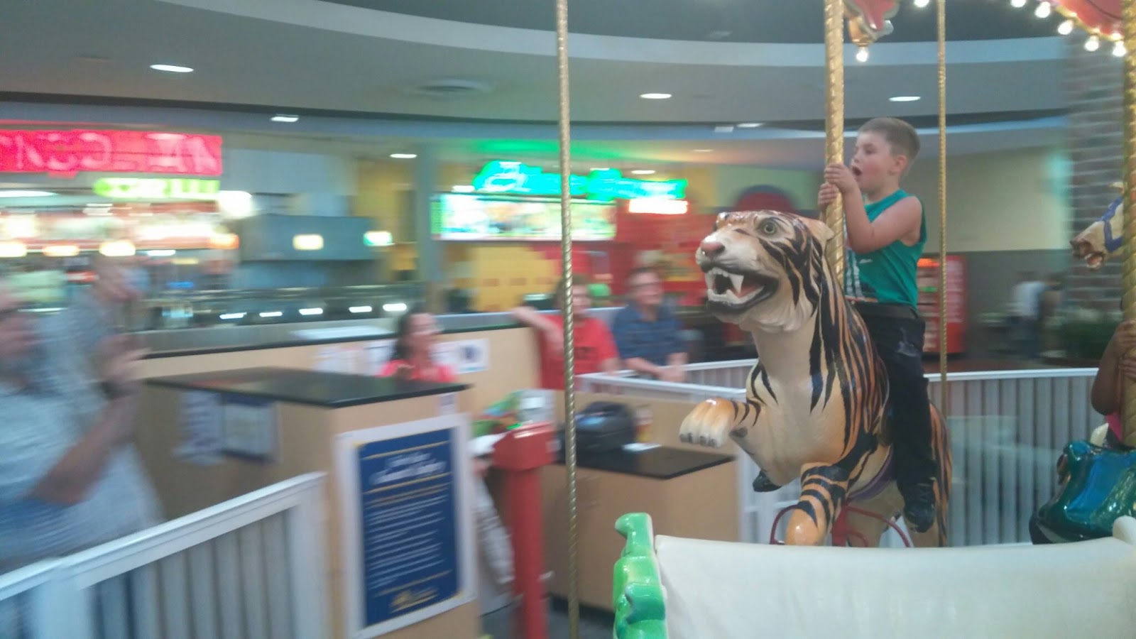 If that weren’t enough, that evening, my dad and brother took us to the Valley Fair Mall where instead of riding a pony, he got to ride