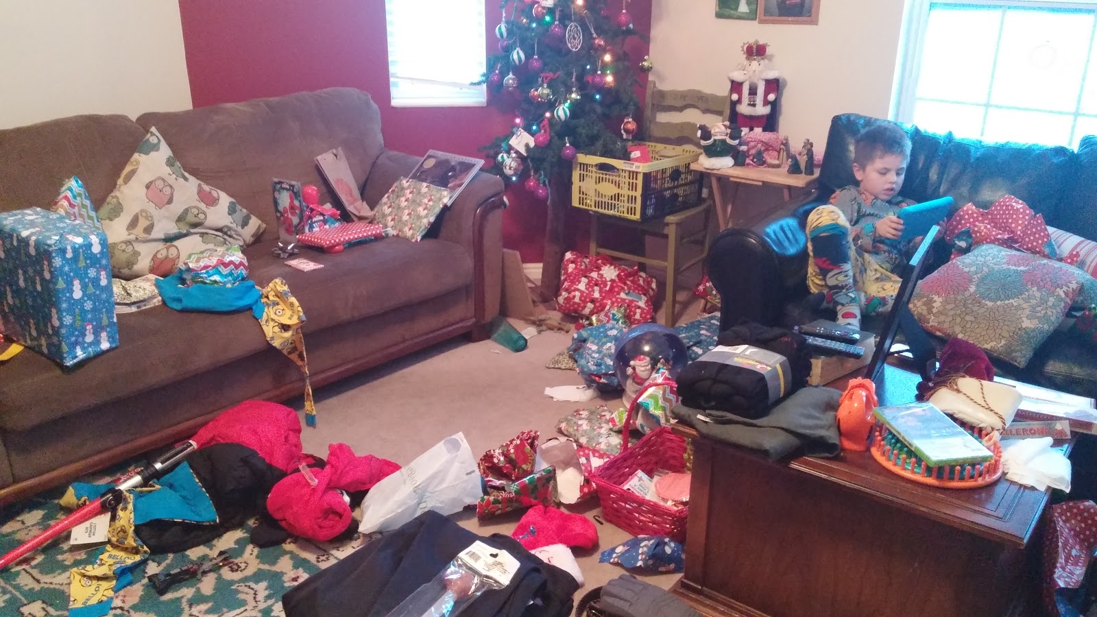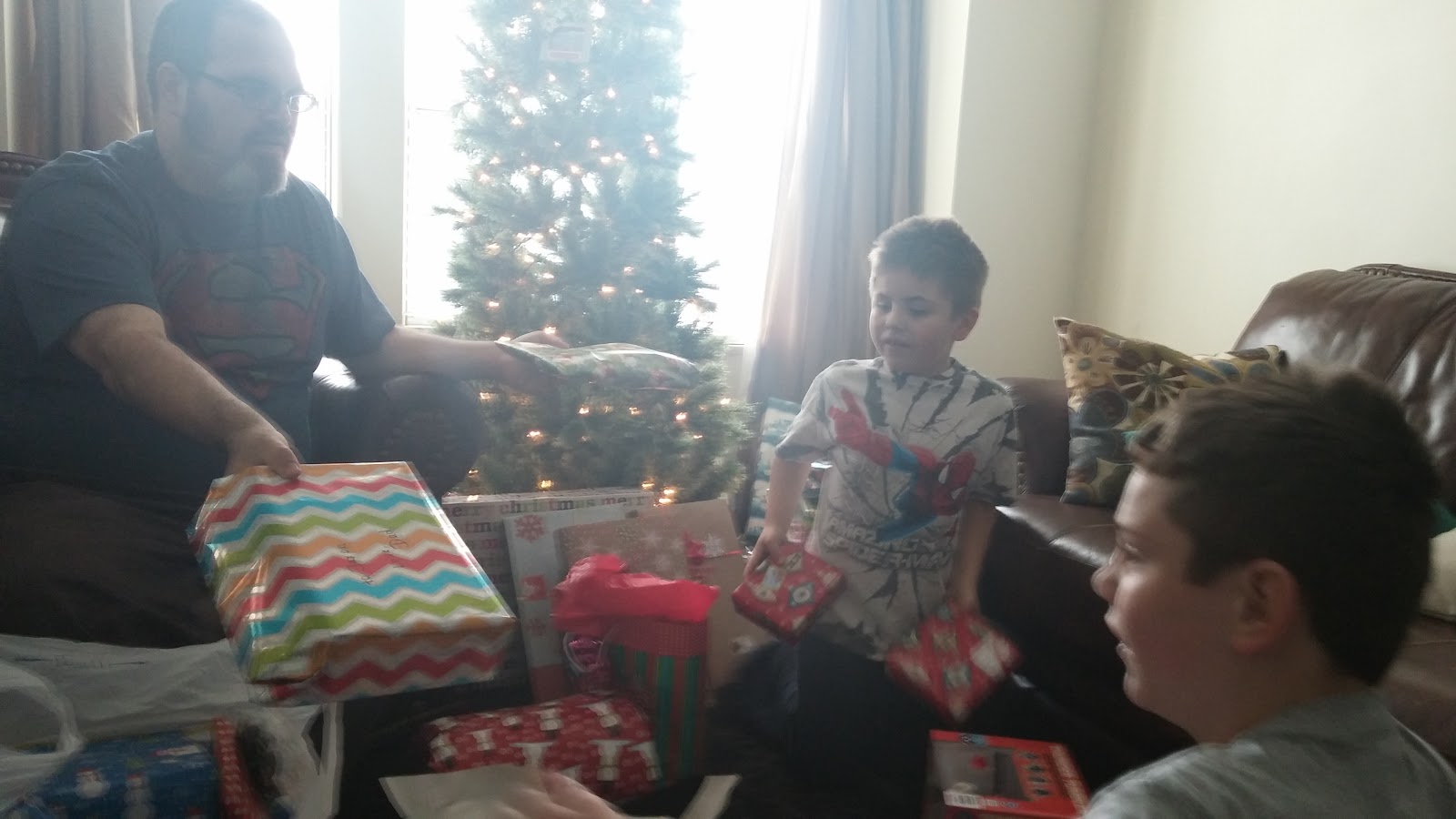 I’ve had fun playing Santa this year. My favorite part of Christmas is filling the stocking. It was like doing my own fantasy stocking, complete with my favorite chocolates! The boys got Star Wars toothbrushes, Star Wars tattoos, markers, bath scrubby thingys, and chocolate money!